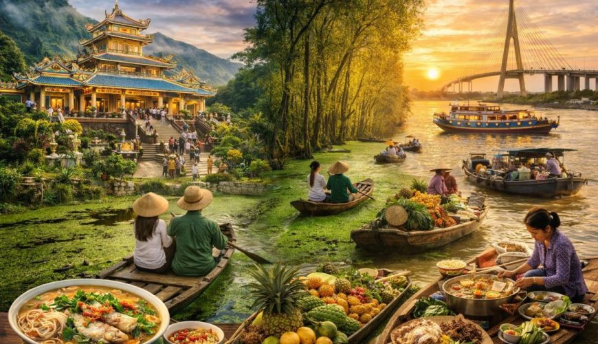 Tour Châu Đốc – Trà Sư – Cần Thơ 2N2Đ là hành trình khám phá nét đẹp đặc trưng của miền Tây Nam Bộ với hệ sinh thái rừng tràm xanh mát, chợ nổi nhộn nhịp và những công trình tâm linh nổi tiếng. Chuyến đi đưa du khách đến với Châu Đốc, vùng đất […]